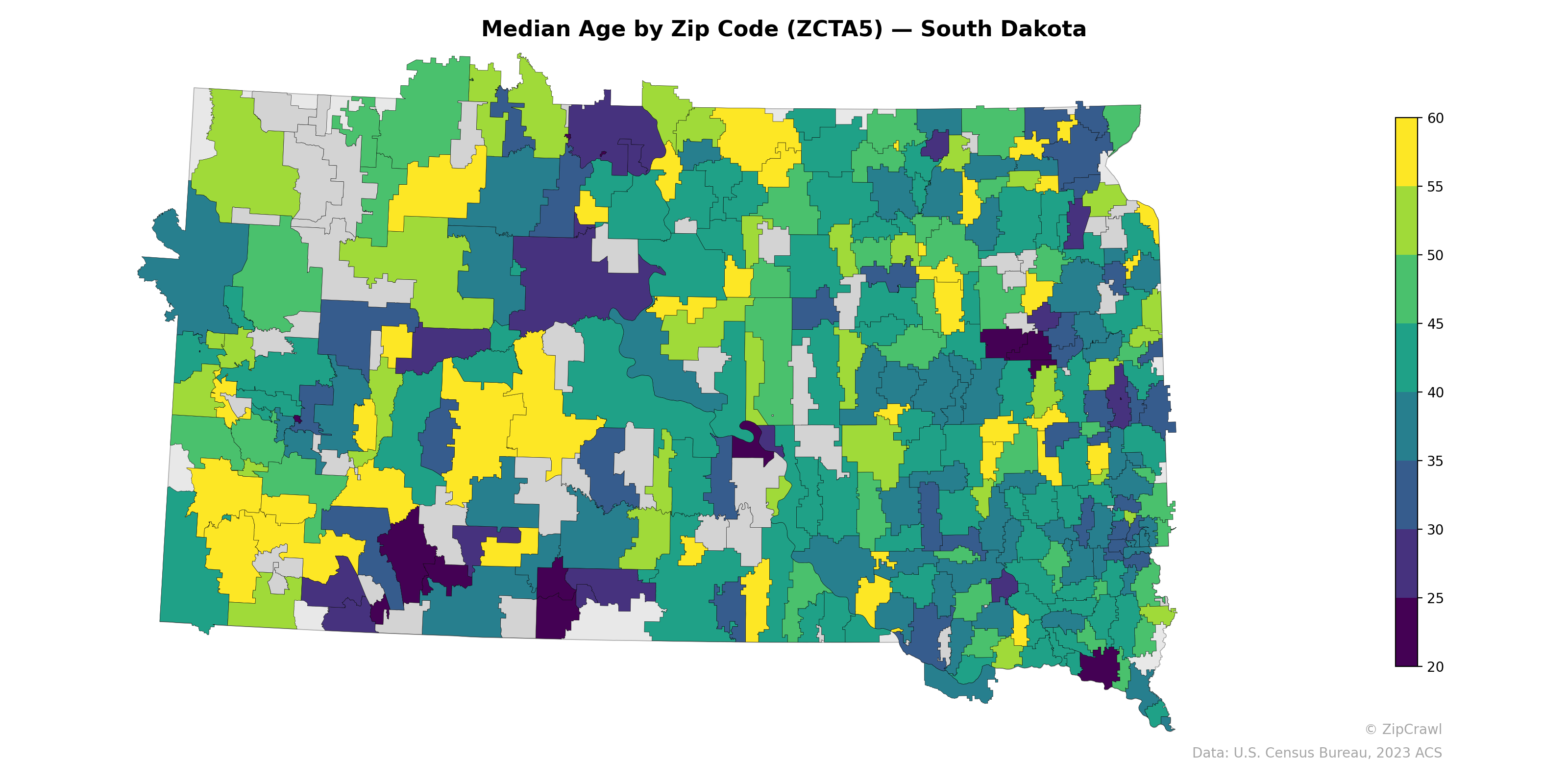 - Median Age by Zip Code (ZCTA5) — North Dakota